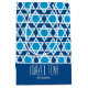 Personalized gift bags are a great way to add a personal touch to your gift-giving! This stylish template features a geometric star pattern and is personalized with the recipient's name. The 'Mazel Tov!' greeting can also be modified or adapted for different occasions. A versatile design that's perfect for family and friends to celebrate birthdays, holidays, Hanukkah, Bar or Bat Mitzvah, graduations, a new home and more! Available with a matte or glossy finish. Colours: navy blue, sky blue and white.