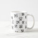 This mug has a mid-century modern design of scattered mazes.