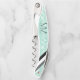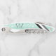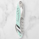 A beautifully crafted corkscrew in the colour mint madness, accented with dark grey, white, and black. It has a corkscrew, a bottle opener, and a small knife.
