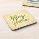 This Digitalized, graphic photo, of Cursive font, "Merry Christmas", is highlighted in, green, and gold-displayed on a glittering, yellow-gold, and bronze, background.
