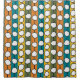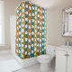 This shower curtain has a mid-century modern design of white “deformed” circles connected with black lines on a field of green, orange, turquoise, and gold strips. If you like the design but prefer different colours, message me.