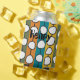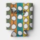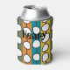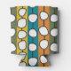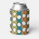 This can cooler has a mid-century modern design of white “deformed” circles connected with black lines on a field of green, orange, turquoise, and gold strips. If you like the design but prefer different colours, message me.