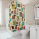 A simple 1950s abstract art design with rounded squares and rectangles in a disarrayed multicolored pattern.