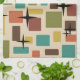 A simple 1950s abstract art design with rounded squares and rectangles in a disarrayed multicolored pattern.