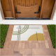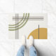 An abstract design inspired by the abstract. minimalism of 1950s art. Circles and lines in gold and olive green.
