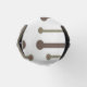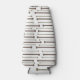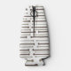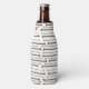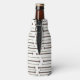 This bottle cooler has a mid-century modern inspired design of lines with circles on the ends in camouflage colors of two shades of brown.