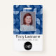 A blue mid century modern pattern makes this employee badge stand out. A basic business design that highlights your office logos and employee name. You can add a scan bar code on the front and back.