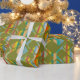 This wrapping paper has a mid-century modern design of rounded green rectangles with holes on a background of stripes in mid-century modern colours. If you like the design but prefer different colours, message me.