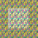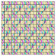 This fabric has a mid-century modern design of crescent moons divided horizontally into three colours, pink, blue, lavender, or seafoam, split in half and scattered on a grid with a yellow background. If you like the design but want different colours, message me.