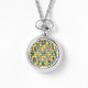 This women's watch has a mid-century modern design of crescent moons divided horizontally into three colours, pink, blue, lavender, or seafoam, split in half and scattered on a grid with a yellow background. If you like the design but want different colours, message me.