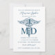 MD and caduceus medical symbol, editable colours and initials. Works as both a graduation party invitation or a graduation announcement. Photo on the back is optional