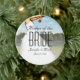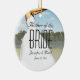 Beautiful keepsake ornament featuring a stylized photo of a bride in a meadow against a blue sky. Customized text for a one of a kind gift for your wedding party. Save the date announcements, thank you notes, wedding organizers and postage stamps also available. PinkInkArt original!