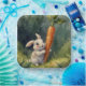 Make mealtime magical with our Whimsical Watercolor Bunny Plate, featuring a charming hand-painted design of a bunny holding a large carrot in a lush meadow surrounded by a vibrant green forest.