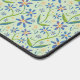 Add a little cheer to your work with a whimsical, hand-painted watercolor floral patterned desk mat, featuring playful blue, orange and yellow daisy blooms dancing on a mint green background.
