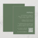 An all-purpose enclosure card for your wedding invitations, this petite Details card provides three custom text fields for your wedding details, website, and a QR code for RSVPs or additional information. Designed to match our Wild Meadow wedding invitations. A simple typography based design with a minimalist feel, featuring classic white lettering on a grass green background.
