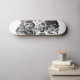 Skateboard version of the artwork ''Meal-Czech'' picturing figures and abstract objects in black and white. No meaning is to seek but can be found in every corner.