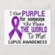 Your loved one battling Lupus is extraordinary.  Put on your purple to support this pillar of strength with our I Wear Purple For Someone Who Means The World To Me Lupus support t-shirts, apparel, gifts, and merchandize featuring contrasting text fonts and a striking purple Lupus awareness ribbon. This eye-catching Lupus design is sure to turn heads in your direction as you declare your support for your loved one and share the very important message of Lupus awareness.