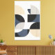Measured Horizon explores the quiet tension between structure and fluidity. Rigid grid lines establish a disciplined architectural framework, while smooth semicircular forms drift across it, softening precision with motion. The restrained palette—sand, stone gray, muted navy, and soft black—evokes mineral surfaces and coastal light, lending the composition a grounded, elemental calm. Balanced asymmetry guides the eye without symmetry or ornament, allowing negative space to breathe. With its flat, matte presence and architectural sensibility, the piece is designed to sit confidently in contemporary interiors, offering stillness, order, and subtle depth rather than visual noise.