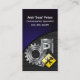 A piston and gear form the main image in this mechanic/car repair business card you can customize with your name and details.