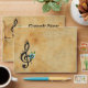 Mechanical clef and flowers to the beat of the clocks. A steampunk-style treble clef, rendered in dark metal with bronze accents and intricate detailing. The clef is adorned with blue flowers that have clock faces at their centres, adding a whimsical touch. Musical notes float near the clef, and small droplets hang from its curves.