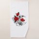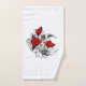 It was advertised as NAVY blue and the color sent was greenish blue. I am disappointed in this product. Quality and printing are great as are all my other orders. As you can see in picture the tea towel on right is perfect, hand towel not so much! Print was awesome and just as ordered