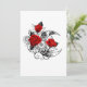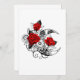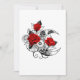 Contour, mechanical crescent moon with gears, decorated with red roses with black spiked stems and leaves on white background. Steampunk