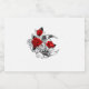 Contour, mechanical crescent moon with gears, decorated with red roses with black spiked stems and leaves on white background. Steampunk