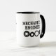 Mechanical Engineer in grey text and a row of gears is a unique gift design for mechanical, robotic, thermodynamics, nanotechnology and manufacturing engineers and engineering students.