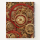 A steampunk belly dancer with a red outfit combining passion and technology.