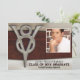 Automotive theme grad announcement invite for car lovers or mechanics class students! Close up photograph showing a shiny silver metal chrome V8 engine emblem on dark stained wood trim and rich, creamy white leather. This modern graduation party announcement and invitation has a simple stylish photo frame area for a square cropped photograph of your grad. Easy to read black and brown text that you can easily customize with your student's name, grad year and school. Sample photo is free, commercial use ok from dreamstime.com