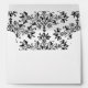 Enveloppes élégantes avec texte de script pour vos étiquettes d'adresse de retour sur le devant, et un élégant médaillon vintage de gravure florale sur le rabat arrière, bordé d'un motif de marguerites damassées à l'intérieur.