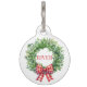 Cette étiquette de chien de vacances de Noël comporte une couronne verte avec arc en vichy rouge. Personnalisez avec votre choix de texte spécial à l'avant et à l'arrière. Parfait pour les fêtes de fin d'année et les sacs cadeaux.