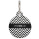 L'étiquette familière de nom personnalisé est affichée dans une impression en chevron noir et blanc, customisez et changez le nom de l'animal à ce que vous avez besoin.