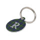 Étiquette de chien décorée d'un monogramme d'amusement avec l'avant fait dans le motif bleu, vert, et rouge de plaid de Gunn de clan, avec un grand monogramme de lettre du blanc un. Le dos de l'étiquette est fait dans bleu-foncé, avec le texte blanc. Personnalisez le monogramme et le texte sur de nouveau au costume vos besoins.