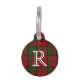 Fun monogrammed chien tag avec le devant fait dans le clan rouge et vert Dunbar plaid motif, avec un grand monogramme blanc une lettre. Le dos de la balise est fait en rouge, avec du texte blanc. Personnalisez le monogramme et le texte au dos pour répondre à vos besoins.