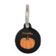 Une étiquette pour votre chien ou chat avec une citrouille sur fond noir. Vous pouvez la personnaliser avec un nom et un numéro de téléphone.
