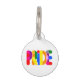 Cette oeuvre d'art colorée présente la Pride, décorée en arc-en-ciel.
