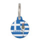 Icône de la Garde Evzone grecque (tsolias) tenant un fusil, portant fès rouge, fustanella et tsarouchia. Drapeau de l'arrière - plan grec. Texte personnalisé des deux côtés.