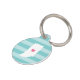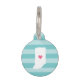 Laissez votre ami furieux montrer une certaine fierté de l'état avec cette mignonne étiquette d'identification Indiana. Design présente une carte en silhouette blanche de l'état de l'Indiana avec un coeur rose à l'intérieur, sur un ton sur ton bleu turquoise arrière - plan rayé. Ajoutez le nom et les coordonnées de votre animal à l'arrière en lettres blanches sur un arrière - plan aqua.