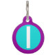 Cette étiquette d'animal familier de monogramme de rond comporte une lettre minuscule graphique L initiale sur un arrière - plan de pourpre et de bleu d'aqua. Entièrement personnalisable ! Ajoutez le dos personnel de l'information de votre chien dessus, ou le supprimez si vous préférez.