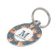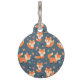 Chien personnalisé avec un motif fait de renards orange mignons et heureux. Arrière - plan vert foncé. Petits champignons et feuilles parsemés. Un cercle blanc superposé avec un nom et un monogramme initial à l'intérieur.