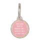 Traitez votre animal de compagnie Pawdorable avec cette étiquette d'identification personnalisée pawdorable. Doté d'un motif de cactus rose et de son nom, il peut s'agir de l'étiquette d'identification la plus mignonne que votre animal ait jamais possédé ! Vous recherchez le meilleur chien / chat dans le quartier? Alors cette mignonne étiquette d'identification personnalisée est pour vous ! Conçu pour être à la mode et fonctionnel avec de la place pour vous d'ajouter votre nom, numéro & adresse sur le dos, il est conforme aux réglementations du Royaume-Uni et des États-Unis. Il est cependant de la responsabilité des propriétaires d'animaux de compagnie de vérifier les lois de leur pays sur les étiquettes d'identification d'animaux de compagnie pour s'assurer que toutes les informations nécessaires sont sur l'étiquette. Convient aux chiens et chats et fait le cadeau parfait! PERSONNALISATION : Créez votre propre apparence customisée en changeant la couleur, la couleur de police, le style de police et le texte de l'arrière - plan en cliquant sur "Personnaliser ce modèle" et "Modifier à l'aide de l'outil de conception". Pour les designs personnalisés sur ce produit ou d'autres, vous pouvez contacter le concepteur via Zazzle conversation ou sur instagram @AURAYASTUDIO