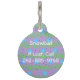 Tag ID chien en turquoise, lavande et vert. L'écriture qui peut être modifiée est blanche pour effet. Tous les mots et la couleur de l'écriture peuvent être changés.