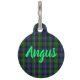 Médaillon Pour Animaux Plaid Tartan Blue & Green Ajouter nom et numéro