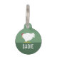 Cette étiquette d'identification d'animal de compagnie présente une adorable conception de poulet sur un arrière - plan vert avec de l'espace pour le nom d'un animal de compagnie à ajouter. C'est un choix mignon et approprié pour un éleveur de poulets jardins ou pour toute personne qui aime les animaux de ferme, offrant une façon ludique et personnalisée d'assurer la sécurité de son ami plumé.