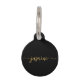 Girly Simple Minimalist Noir Et Or Monogramme Nom Script Personnalisé Female Chien ou Chiot Nom de l'animal de compagnie tag. Ce design avec votre prénom dans un joli style écrit à la main typographie de signature de la police de la queue de swash sur l'arrière - plan noir et or. Cette étiquette de chien mignonne et girly peut être customisée avec le prénom de votre chien.