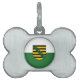 Étiquette avec variante du drapeau de la Saxe; conception avec deux bandes horizontales de vert et de blanc, et avec armoiries de l’État au centre