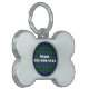 Grande étiquette de regard d'identification d'animal familier faite dans une forme d'os. Un secteur rond, au milieu de l'os, a un motif bleu et vert de plaid de tartan, avec le texte blanc. Personnalisez le texte pour votre animal familier.