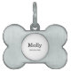 This elegant dog tag features a crisp white center framed by a classic brushed metal bone shape, creating a timeless and easy-to-read design. Your pet’s name and contact number appear in simple black lettering for maximum clarity. Lightweight, durable, and perfect for everyday use, this minimalist dog tag blends style and function to help keep your furry friend safe.