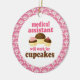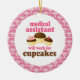 Medical Assistant ornament has funny will work for cupcakes quote and a trio of cute chocolate cupcakes occupation design. It makes a great Christmas gift idea or retirement gift for a woman or female Medical Assistant.